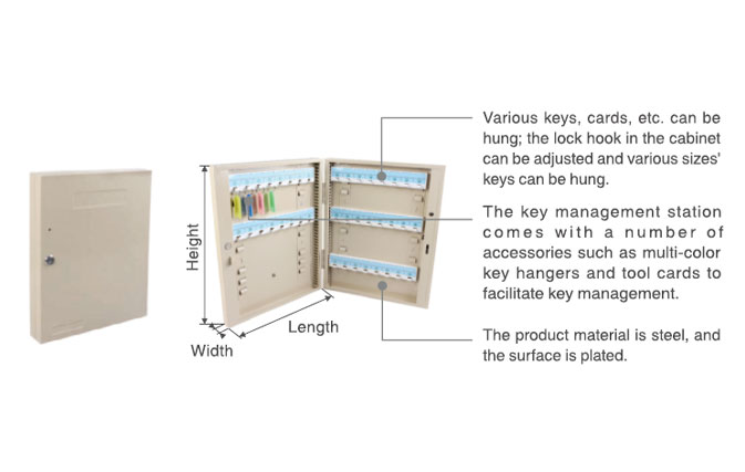 Various keys, cards, etc.can be hung; the lock hook in the cabinet can be adjusted and various sizes' keys can be hung.