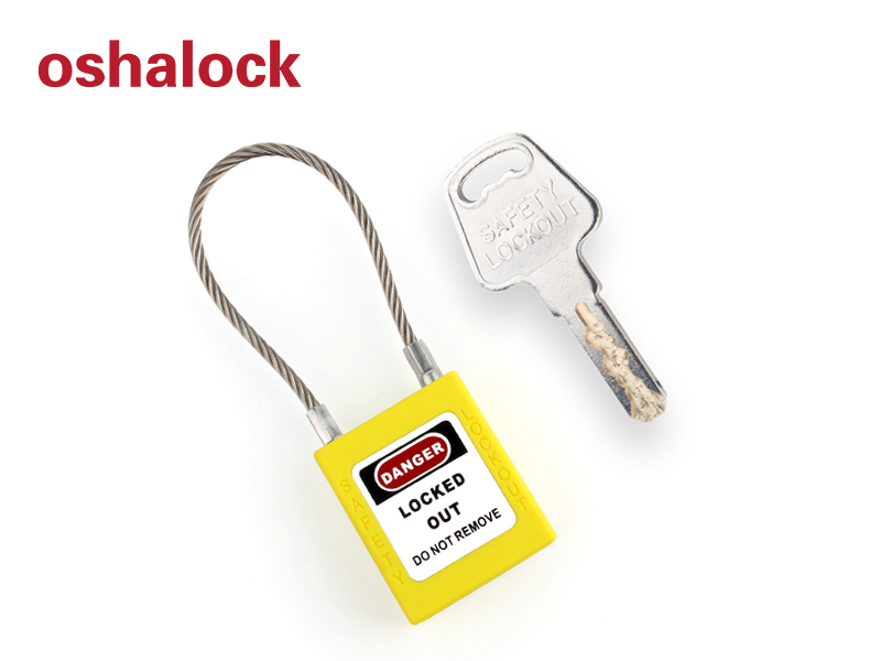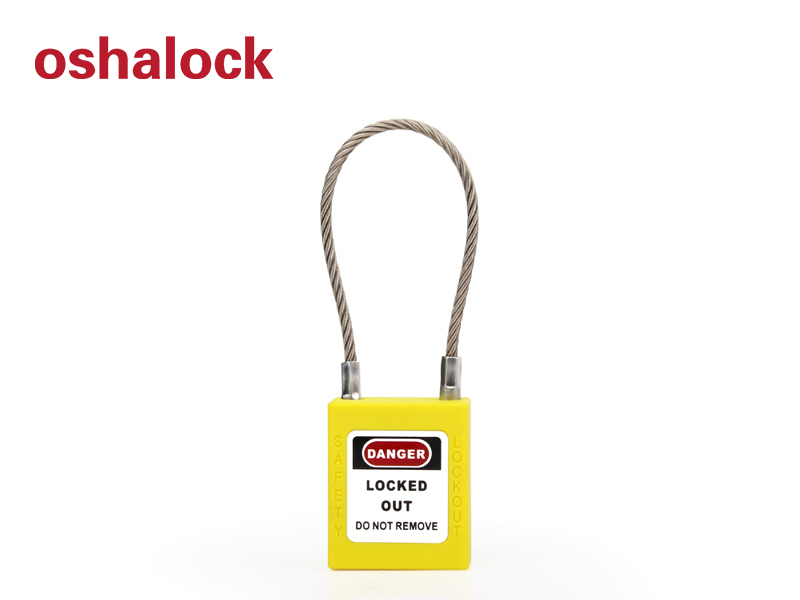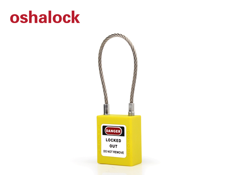 Padlock with (3.2mm Ø) stainless steel cable shackle, which are suitable for lockout and tagout of plumbing equipment and electrical equipment.
